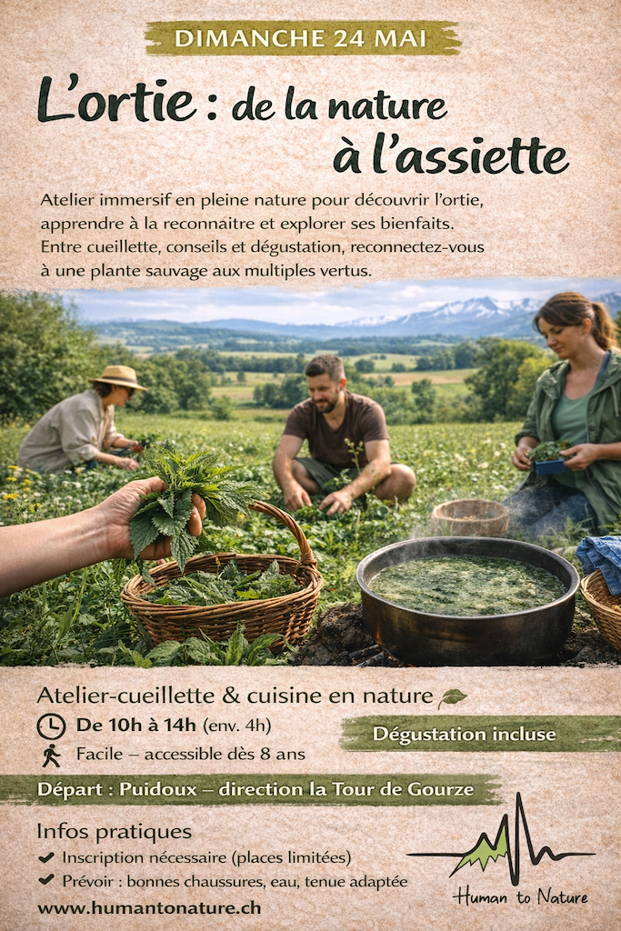 Partez à la découverte de l’ortie, une plante sauvage aux multiples bienfaits. Lors de cette randonnée, vous apprendrez à la reconnaître, comprendre ses propriétés et découvrir des usages simples en cuisine. Une petite dégustation permettra de l’explorer autrement. Une approche accessible pour reconnecter nature, santé et alimentation.